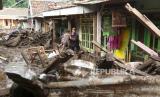 REPUBLIKA.CO.ID,BONDOWOSO -- Warga menggendong seorang anak melintasi material lumpur yang merendam rumahnya pascabanjir bandang di Desa Kalisat, Ijen, Bondowoso, Jawa Timur, Senin (13/2/2023).