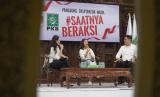 REPUBLIKA.CO.ID,JAKARTA -- Jubir Milenial Partai Kebangkitan Bangsa (PKB) Nada Fuady (kiri), Aktivis Lingkungan Rafaela Xaviera (tengah), dan Jubir Milenial PKB Mikhael B Sinaga, hadir dalam diskusi Milenial PKB #Saatnya Beraksi di Kantor DPP PKB, Jakarta Pusat, Senin (13/2/2023).