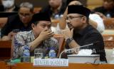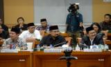 Menteri Agama Yaqut Cholil Qoumas mengikuti rapat kerja dengan Komisi VIII DPR di kompleks Parlemen, Senayan, Jakarta, Rabu (15/2/2023). Dalam Rapat tersebut Komisi VIII DPR RI bersama Menteri Agama RI menyepakati Biaya Perjalanan Ibadah Haji (Bipih) atau biaya yang dibayar langsung oleh jemaah haji rata-rata per jemaah sebesar Rp49.812.700.26 pada tahun 1444 H/2023 M. (FOTO : Republika/Prayogi.)