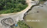 REPUBLIKA.CO.ID,KONAWE -- Foto udara aktivitas pekerja mengumpulkan pasir yang disedot menggunakan mesin di Sungai Konaweha, Kecamatan Bondoala, Kabupaten Konawe, Sulawesi Tenggara, Rabu (15/2/2023).