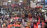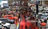 Pengunjung mengamati mobil yang dipamerkan dalam pameran Indonesia International Motor Show (IIMS) 2023 di JIExpo Kemayoran, Jakarta, Kamis (16/2/2023). Mengusung tagline BOOST Bringing Oportunity for Otomotif Society Together, IIMS mengajak industri otomotif untuk berinovasi dan berkontribusi dalam industri otomotif dan akan berlangsung pada 16-26 Februari 2023. (FOTO : Republika/Edwin Dwi Putranto)