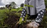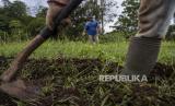 REPUBLIKA.CO.ID,BANDUNG -- Anggota Kelompok Tani Tumbuh Mandiri menggarap lahan untuk ditanami tanaman cabai di Jalan Raden Demang Hardjakusumah, Citereup, Kota Cimahi, Provinsi Jawa Barat, Kamis (16/2/2023).