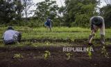 Anggota Kelompok Tani Tumbuh Mandiri beraktivitas di area lahan pertanian di Jalan Raden Demang Hardjakusumah, Citereup, Kota Cimahi, Provinsi Jawa Barat, Kamis (16/2/2023). Kelompok Tani Tumbuh Mandiri yang beranggotakan 26 orang penyandang disabilitas tersebut memanfaatkan lahan kosong untuk dijadikan lahan pertanian. Hal tersebut bertujuan untuk melatih kemandirian penyandang disabilitas serta bentuk upaya ketahanan pangan dan meningkatkan kesejahteraan anggota. (FOTO : ABDAN SYAKURA/REPUBLIKA)