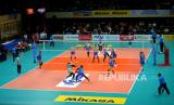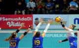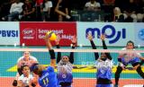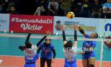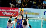 Pertandingan antara Bandung BJB Tandamata melawan Jakarta Popsivo Polwan pada lanjutan Proliga 2023 di GOR UNY, Yogyakarta, Kamis (16/2/2023). Pada pertandingan ini Bandung BJB Tandamata harus takluk di tangan Jakarta Popsivo Polwan 2-3 (21-25, 25-19, 28-30, 25-15, 10-15). (FOTO : Republika/Wihdan Hidayat)