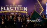 Ketua Umum PSSI periode 2019-2023 Mochamad Iriawan menyerahkan bendera PSSI kepada Ketua Umum PSSI periode 2023-2027 Erick Thohir usai Kongres Luar Biasa PSSI di Jakarta, Kamis (16/2/2023). Pada kongres tersebut Erick Thohir resmi terpilih sebagai Ketua Umum PSSI sementara Zainuddin Amali dan Ratu Tisha terpilih sebagai Wakil Ketua Umum PSSI untuk kepengurusan 2023-2027. (FOTO : Republika/Putra M. Akbar)