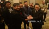 Ketua Umum PSSI periode 2023-2027 Erick Thohir bersama Wakil Ketua Umum Zainuddin Amali dan Ratu Tisha berbincang usai Kongres Luar Biasa PSSI di Jakarta, Kamis (16/2/2023). Pada kongres tersebut Erick Thohir resmi terpilih sebagai Ketua Umum PSSI sementara Zainuddin Amali dan Ratu Tisha terpilih sebagai Wakil Ketua Umum PSSI untuk kepengurusan 2023-2027. (FOTO : Republika/Putra M. Akbar)