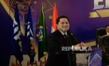 Ketua Umum PSSI periode 2023-2027 Erick Thohir menyampaikan pidato kemenangan usai Kongres Luar Biasa PSSI di Jakarta, Kamis (16/2/2023). Pada kongres tersebut Erick Thohir resmi terpilih sebagai Ketua Umum PSSI sementara Zainuddin Amali dan Ratu Tisha terpilih sebagai Wakil Ketua Umum PSSI untuk kepengurusan 2023-2027. (FOTO : Republika/Putra M. Akbar)