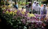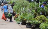 REPUBLIKA.CO.ID,JAKARTA -- Pengunjung melihat tanaman pada acara Floraction di Lapangan Banteng, Jakarta, Sabtu (18/2/2023).