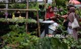 Pengunjung melihat tanaman pada acara Floraction di Lapangan Banteng, Jakarta, Sabtu (18/2/2023). Floraction menampilkan berbagai macam jenis tanaman seperti tanaman hias, bunga, buah, obat dan beberapa jenis fauna, yang dijual mulai dari puluhan ribu hingga jutaan rupiah. (FOTO : Republika/Putra M. Akbar)