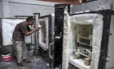 REPUBLIKA.CO.ID,BANDUNG -- Pekerja memasukkan gelas keramik ke dalam tungku pembakaran di Elina Keramik, Jalan Taman Pramuka, Bandung Wetan, Kota Bandung, Provinsi Jawa Barat, Sabtu (18/2/2023).
