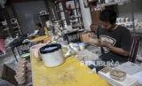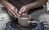 Pekerja menyortir tanah liat di Elina Keramik, Jalan Taman Pramuka, Bandung Wetan, Kota Bandung, Provinsi Jawa Barat, Sabtu (18/2/2023). Berbagai jenis kerajinan keramik seperti mangkuk, gelas, aksesoris, cinderamata dan dekorasi rumah yang dijual dengan harga Rp10 ribu hingga Rp3,5 juta tersebut telah menembus pasar ekspor di Singapura, Belanda dan Uni Emirat Arab. (FOTO : ABDAN SYAKURA/REPUBLIKA)