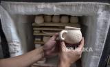 Pekerja memasukkan gelas keramik ke dalam tungku pembakaran di Elina Keramik, Jalan Taman Pramuka, Bandung Wetan, Kota Bandung, Provinsi Jawa Barat, Sabtu (18/2/2023). Berbagai jenis kerajinan keramik seperti mangkuk, gelas, aksesoris, cinderamata dan dekorasi rumah yang dijual dengan harga Rp10 ribu hingga Rp3,5 juta tersebut telah menembus pasar ekspor di Singapura, Belanda dan Uni Emirat Arab. (FOTO : ABDAN SYAKURA/REPUBLIKA)