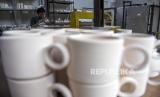 Pekerja menyelesaikan pembuatan gelas keramik di Elina Keramik, Jalan Taman Pramuka, Bandung Wetan, Kota Bandung, Provinsi Jawa Barat, Sabtu (18/2/2023). Berbagai jenis kerajinan keramik seperti mangkuk, gelas, aksesoris, cinderamata dan dekorasi rumah yang dijual dengan harga Rp10 ribu hingga Rp3,5 juta tersebut telah menembus pasar ekspor di Singapura, Belanda dan Uni Emirat Arab. (FOTO : ABDAN SYAKURA/REPUBLIKA)