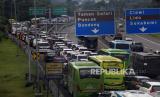 Kepadatan kendaraan di jalur wisata Puncak, Gadog, Kabupaten Bogor, Jawa Barat, Sabtu (18/2/2023). Tingginya volume kendaraan wisatawan saat libur Isra Miraj Nabi Muhammad SAW dan libur akhir pekan menyebabkan terjadinya kepadatan di jalur wisata Puncak Bogor sehingga Polres Bogor memberlakukan sistem satu arah. (FOTO : Antara/Yulius Satria Wijaya )