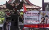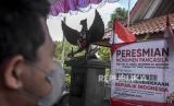 REPUBLIKA.CO.ID,BANDUNG -- Warga berada di dekat Monumen Pancasila usai diresmikan di area Makam Ibu Inggit Garnasih, Babakan Ciparay, Kota Bandung, Provinsi Jawa Barat, Senin (20/2/2023).