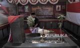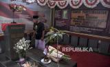 Juru kunci Makam Ibu Inggit Garnasih, Abah Oneng Rohiman merawat makam disela peresmian Monumen Pancasila di Babakan Ciparay, Kota Bandung, Provinsi Jawa Barat, Senin (20/2/2023). Peresmian Monumen Pancasila yang dilakukan oleh YPP UNIQ Nusantara Pancasila tersebut sebagai bentuk penghormatan terhadap jasa dan perjuangan Inggit Garnasih yang juga istri kedua Presiden Soekarno. Selain itu, kegiatan tersebut bertujuan untuk mengukuhkan serta mengamalkan nilai-nilai ideologi Pancasila dalam kehidupan sehari-hari. (FOTO : ABDAN SYAKURA/REPUBLIKA)