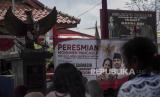 Warga berada di dekat Monumen Pancasila usai diresmikan di area Makam Ibu Inggit Garnasih, Babakan Ciparay, Kota Bandung, Provinsi Jawa Barat, Senin (20/2/2023). Peresmian Monumen Pancasila yang dilakukan oleh YPP UNIQ Nusantara Pancasila tersebut sebagai bentuk penghormatan terhadap jasa dan perjuangan Inggit Garnasih yang juga istri kedua Presiden Soekarno. Selain itu, kegiatan tersebut bertujuan untuk mengukuhkan serta mengamalkan nilai-nilai ideologi Pancasila dalam kehidupan sehari-hari. (FOTO : ABDAN SYAKURA/REPUBLIKA)