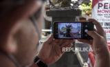 Warga mengambil gambar menggunakan ponsel Monumen Pancasila usai diresmikan di area Makam Ibu Inggit Garnasih, Babakan Ciparay, Kota Bandung, Provinsi Jawa Barat, Senin (20/2/2023). Peresmian Monumen Pancasila yang dilakukan oleh YPP UNIQ Nusantara Pancasila tersebut sebagai bentuk penghormatan terhadap jasa dan perjuangan Inggit Garnasih yang juga istri kedua Presiden Soekarno. Selain itu, kegiatan tersebut bertujuan untuk mengukuhkan serta mengamalkan nilai-nilai ideologi Pancasila dalam kehidupan sehari-hari. (FOTO : ABDAN SYAKURA/REPUBLIKA)