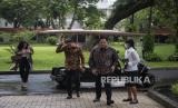 Ketua Umum PSSI periode 2023-2027 Erick Thohir (kedua kanan) didampingi Wakil Ketua Zainudin Amali (kedua kiri) dan Ratu Tisha (kiri) tiba di Kantor Presiden seusai bertemu Presiden Joko WIdodo di Istana Kepresidenan Jakarta, Senin (20/2/2023). Dalam kesempatan itu Presiden Joko Widodo memberikan arahan kepada pengurus baru PSSI untuk membuat sebuah blueprint atau cetak biru persepakbolaan nasional secara jangka pendek, menengah hingga panjang. (FOTO : Antara/Sigid Kurniawan)