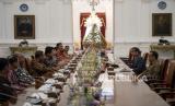 Presiden Joko Widodo (kedua kanan) didampingi Mensesneg Pratikno (kanan) menerima Ketua Umum PSSI periode 2023-2027 Erick Thohir (kelima kiri) didampingi Wakil Ketua Zainudin Amali (keempat kiri) dan Ratu Tisha (keenam kiri) beserta jajaran Exco di Istana Merdeka, Jakarta, Senin (20/2/2023). Dalam kesempatan itu Presiden Joko Widodo memberikan arahan kepada pengurus baru PSSI untuk membuat sebuah blueprint atau cetak biru persepakbolaan nasional secara jangka pendek, menengah hingga panjang. (FOTO : Antara/Sigid Kurniawan)