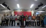 REPUBLIKA.CO.ID,JAKARTA -- Ketua Umum PSSI periode 2023-2027 Erick Thohir (ketujuh kiri) didampingi Wakil Ketua Zainudin Amali (ketujuh kanan) dan Ratu Tisha (kelima kiri) beserta jajaran Exco PSSI menyampaikan keterangan pers usai bertemu Presiden Joko Widodo di Kantor Presiden, Jakarta, Senin (20/2/2023).