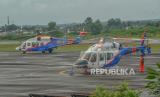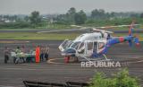 REPUBLIKA.CO.ID, JAMBI -- Tim SAR gabungan TNI, Polri, dan Basarnas menyiapkan kelengkapan logistik di samping helikopter Bell 429 milik Korpolairud Baharkam Polri sebelum diberangkatkan menuju Kabupaten Kerinci dari Bandara Sultan Thaha lama, Jambi, Senin (20/2/2023).