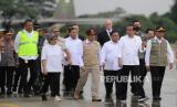 REPUBLIKA.CO.ID,JAKARTA -- Presiden Joko Widodo bersama Menteri Pertahanan Prabowo Subianto, Menteri Luar Negeri Retno Marsudi, Menteri Koordinator Bidang Pembangunan Manusia dan Kebudayaan Muhadjir Effendy, Kepala BNPB Letjen TNI Suharyanto, Kapolri Jenderal Pol Listyo Sigit Prabowo dan Panglima TNI Laksamana Yudo Margono menyampaikan konferensi pers usai meninjau bantuan logistik yang akan dikirimkan ke Turki dan Suriah di Lanud Halim Perdana Kusuma, Jakarta, Selasa (21/2/2023).