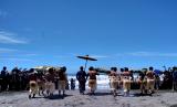 Abdi dalem Keraton Yogyakarta dan warga menonton Labuhan Alit di Pantai Parangkusumo, Parangtritis, Bantul, Yogyakarta, Selasa (21/2/2023). Tradisi Keraton Yogyakarta ini diadakan setiap 30 Rajab dalam rangka Tingalan Jumenengan Dalem atau peringatan kenaikan tahta Raja Sri Sultan Hamengku Buwono X. Labuhan Alit yang diadakan tahunan ini menjadi salah satu daya tarik wisatawan terutama untuk wisata budaya. (FOTO : Republika/Wihdan Hidayat)
