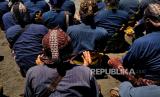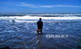 Abdi dalem Keraton Yogyakarta berdoa usai prosesi Labuhan Alit di Pantai Parangkusumo, Parangtritis, Bantul, Yogyakarta, Selasa (21/2/2023). Tradisi Keraton Yogyakarta ini diadakan setiap 30 Rajab dalam rangka Tingalan Jumenengan Dalem atau peringatan kenaikan tahta Raja Sri Sultan Hamengku Buwono X. Labuhan Alit yang diadakan tahunan ini menjadi salah satu daya tarik wisatawan terutama untuk wisata budaya. (FOTO : Republika/Wihdan Hidayat)
