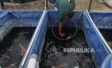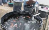 REPUBLIKA.CO.ID,Pekerja memperbaiki penyaring udara untuk ikan koi tanpa sisik atau biasa dikenal dengan jenis doitsu di kolam pemeliharaan Koi Nation, Batu, Jawa Timur, Selasa (21/2/2022).
