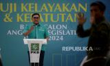 Ketua Umum PKB Muhaimin Iskandar memberikan sambutan dalam uji kelayakan dan kepatutan bakal calon anggota legislatif DPR RI 2024 di Kantor DPP PKB, Jakarta, Selasa (21/2/2023). DPP PKB mengelar uji kelayakan dan kepatutan sebagai bentuk komitmen besar untuk menjaring caleg-caleg yang memiliki integritas dan kapabilitas. Uji Kelayakan dan Kepatutan ini dilakukan dengan melibatkan tokoh-tokoh sebagai tim penguji mulai dari akademisi, praktisi, ulama, jurnalis, dan aktivis. (FOTO : Republika/Prayogi.)