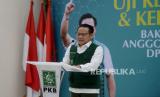 Ketua Lembaga Pemenangan Pemilu (LPP) PKB Jazilul Fawaid memberikan sambutan dalam uji kelayakan dan kepatutan bakal calon anggota legislatif DPR RI 2024 di Kantor DPP PKB, Jakarta, Selasa (21/2/2023). DPP PKB mengelar uji kelayakan dan kepatutan sebagai bentuk komitmen besar untuk menjaring caleg-caleg yang memiliki integritas dan kapabilitas. Uji Kelayakan dan Kepatutan ini dilakukan dengan melibatkan tokoh-tokoh sebagai tim penguji mulai dari akademisi, praktisi, ulama, jurnalis, dan aktivis. (FOTO : Republika/Prayogi.)
