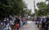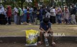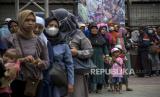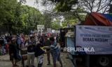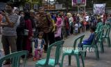 Warga mengantre untuk membeli beras kualitas medium saat operasi pasar beras medium di Lapangan Gasmin, Jalan Purwakarta, Antapani, Kota Bandung, Provinsi Jawa Barat, Rabu (22/2/2023). Pemerintah Kota Bandung bersama Bulog Kota Bandung dan Bank Indonesia menggelar operasi pasar yang menyediakan beras medium sebanyak 20 ton per kecamatan dengan harga Rp8.500 per kilogram atau Rp42.500 per kemasan lima kilogram. Operasi pasar tersebut diharapkan dapat membantu masyarakat menjelang bulan Ramadhan serta upaya menekan kenaikan harga beras di Kota Bandung. (FOTO : ABDAN SYAKURA/REPUBLIKA)