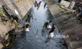 REPUBLIKA.CO.ID,MEDAN -- Petugas kebersihan memungut sampah saat aksi bersih sungai di aliran Sungai Sei Putih, Kota Medan, Sumatera Utara, Rabu (22/2/2023).
