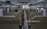 Penumpang berada di dalam gerbong kereta rel diesel (KRD) Lokal Bandung Raya di Stasiun Bandung, Kota Bandung, Provinsi Jawa Barat, Rabu (22/2/2023). Pemerintah Kota Bandung melalui Dinas Perhubungan Kota Bandung berencana akan mengonversi kereta api rel diesel rute Padalarang-Bandung-Cicalengka menjadi kereta rel listrik (KRL) yang dimulai pada 2024. Konversi KRD menjadi KRL tersebut bertujuan untuk menjadi feeder Kereta Cepat Jakarta Bandung (KCJB) serta salah satu upaya menekan kemacetan di Kota Bandung. (FOTO : ABDAN SYAKURA/REPUBLIKA)