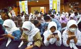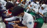 Para pelajar mengikuti Pasanggiri Tarucing Cakra yaitu mengisi teka teki silang berbahasa Sunda yang digelar Pusat Digitalisasi dan Pengembangan Budaya Sunda Universitas Padjadjaran (Unpad) secara hybrid, di Aula Unpad, Jalan Dipatiukur, Kota Bandung, Rabu (22/2/2023). Kegiatan dalam rangka memperingati Hari Bahasa Ibu Internasional ini diikuti sekitar 1.200 orang, terdiri dari pelajar sekolah dasar, sekolah menengah pertama, sekolah menengah atas, hingga orang dewasa. (FOTO : Edi Yusuf/Republika)