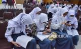 REPUBLIKA.CO.ID, BANDUNG -- Pelajar mengikuti Pasanggiri Tarucing Cakra yaitu mengisi Teka Teki Silang (TTS) berbahasa Sunda yang digelar Pusat Digitalisasi dan Pengembangan Budaya Sunda Universitas Padjadjaran (Unpad) secara hybrid, di Aula Unpad, Jalan Dipatiukur, Kota Bandung, Rabu (22/2/2023).