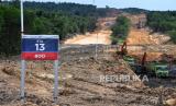 REPUBLIKA.CO.ID,PENAJAM PASER UTARA -- Pekerja dibantu alat berat mengerjakan proyek pembangunan tol Ibu Kota Negara (IKN) Nusantara segmen KKT Kariangau-Simpang Tempadung di Penajam Paser Utara, Kalimantan Timur, Kamis (23/2/2023).
