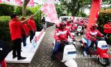 Dewan direksi OExpress (PT Oexpress Logistik CEO & Founder Rovan Alfarry didampingi jajaran direksi melepas rombongan armada kurir OExpress di Jakarta, Kamis (23/2/2023). OExpress menjadi platform yang menjembatani pihak pengirim barang dengan berbagai perusahaan ekspedisi sebagai penyedia jasa pengiriman. (FOTO : Republika/Yogi Ardhi)