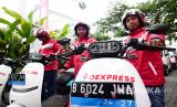 Armada kurir logistik OExpress bersiap sebelum diluncurkan di Jakarta, Kamis (23/2/2023). OExpress menjadi platform yang menjembatani pihak pengirim barang dengan berbagai perusahaan ekspedisi sebagai penyedia jasa pengiriman. (FOTO : Republika/Yogi Ardhi)