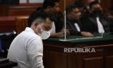 Terdakwa mantan Komandan Kompi I Brimob Polda Jatim AKP Hasdarmawan (kanan) dalam sidang tuntutan kasus tragedi Stadion Kanjuruhan Malang di Pengadilan Negeri Surabaya, Jawa Timur, Kamis (23/2/2023) malam. Jaksa Penuntut Umum menuntut hukuman tiga tahun penjara kepada tiga terdakwa yaitu mantan Komandan Kompi I Brimob Polda Jatim AKP Hasdarmawan, mantan Kabagops Polres Malang Wahyu Setyo Pranoto, dan mantan Kasat Samapta Polres Malang AKP Bambang Sidik Achmadi. (FOTO : ANTARA FOTO/Didik Suhartono)