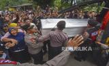 REPUBLIKA.CO.ID, LOMBOK -- Kedatangan jenazah Warga Negara Indonesia (WNI) yang menjadi korban gempa di Turki disambut dengan isak tangis keluarga. Ibu dari Irma Lestari Inak Renah tak sanggup menahan tangisnya saat peti jenazah anaknya tiba di masjid kampung halamannya di Dusun Perampuan Barat, Desa Perampuan Kecamatan Labuapi, Gerung, Lombok Barat, NTB, Kamis (23/2/2023).