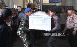 Anggota TNI AU dan Polri membawa peti jenazah Ni Wayan Supini yang merupakan korban gempa bumi di Turki saat tiba di Terminal Kargo dan Pos Domestik, Bandar Udara Internasional I Gusti Ngurah Rai, Badung Bali, Kamis (23/2/2023). Jenazah WNI asal Bali itu untuk sementara dititipkan di RSUD Kabupaten Klungkung dan rencananya akan dimakamkan di Dusun Tegal Besar, Desa Negari, Klungkung, Bali pada 10 Maret 2023. (FOTO : ANTARA FOTO/Nyoman Hendra Wibowo)