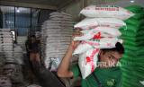 REPUBLIKA.CO.ID,MEDAN -- Pekerja memikul karung berisi beras di Pasar Simpang Limun, Kota Medan, Sumatera Utara, Jumat (24/2/2023).