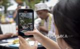 Pengunjung mengambil gambar prosesi akad nikah saat kegiatan Nikah Massal di Mal Cihampelas Walk, Jalan Cihampelas, Coblong, Kota Bandung, Provinsi Jawa Barat, Jumat (24/2/2023). Nikah massal yang merupakan salah satu rangkaian dari acara Indonesia Wedding Festival 2.0 tersebut diikuti oleh tujuh pasangan disabilitas dan lansia. (FOTO : ABDAN SYAKURA/REPUBLIKA)