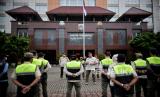 Petugas gabungan dari Satpol PP dan Suku Dinas Sosial Kota Jakarta Pusat melakukan apel usai penertiban Pemerlu Pelayanan Kesejahteraan Sosial (PPKS) di Jakarta, Jumat (24/2/2023). Penertiban tersebut dilakukan terhadap pengemis, pemulung, manusia gerobak, dan gelandangan untuk dilakukan pembinaan di panti sosial. Kegiatan tersebut digelar setiap 2 hari sekali sebagai upaya memberikan pelayanan kepada penyandang PPKS. (FOTO : Republika/Thoudy Badai)