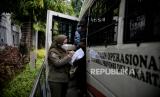 Petugas gabungan dari Satpol PP dan Suku Dinas Sosial Kota Jakarta Pusat melakukan penertiban Pemerlu Pelayanan Kesejahteraan Sosial (PPKS) di Jakarta, Jumat (24/2/2023). Penertiban tersebut dilakukan terhadap pengemis, pemulung, manusia gerobak, dan gelandangan untuk dilakukan pembinaan di panti sosial. Kegiatan tersebut digelar setiap 2 hari sekali sebagai upaya memberikan pelayanan kepada penyandang PPKS. (FOTO : Republika/Thoudy Badai)