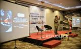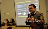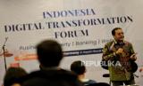 Pendiri Lingkaran Survei Indonesia (LSI), Denny JA memaparkan materi saat menjadi pembicara pada acara Indonesia Digital Transformation Forum (IDTF) yang digelar oleh iCommunity di Jakarta, Sabtu (25/2/2023). Dalam paparanya, Denny JA mengajak masyarakat untuk bersiap dalam menghadapi politics as usual dimana penyebaran berita palsu atau hoax dalam platform media sosial akan semakin masif jelang Pemilu dan Pilkada 2024. (FOTO : Republika/Thoudy Badai)