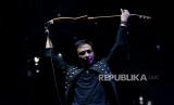 Gitaris grup Band Padi Reborn Piyu saat tampil dalam acara Woke Up Fest 2023 di Istora Gelora Bung Karno (GBK), Senayan, Jakarta, Sabtu (25/2/2023). Dalam penampilannya, Padi Reborn membawakan sejumlah lagu andalannya yakni Kasih Tak Sampai, Begitu Indah, dan Menanti Sebuah Jawaban. (FOTO : Republika/Thoudy Badai)