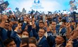 Sejumlah peserta Partai Amanat Nasional (PAN) mengibarkan bendera PAN saat menghadiri Rapat Koordinasi Nasional (Rakornas) PAN di Semarang, Jawa Tengah, Ahad (26/2/2023). Rakornas PAN 2023 yang digelar 26-27 Februari itu dihadiri sekitar 2.400 peserta beragendakan sejumlah lokakarya (workshop) politik serta konsolidasi persiapan partai dalam menghadapi Pemilu 2024 serta rencana dukungan kepada sejumlah kandidat bakal Capres dan Cawapres yang diusung PAN pada Pilpres 2024. (FOTO : ANTARA FOTO/Aji Styawan)